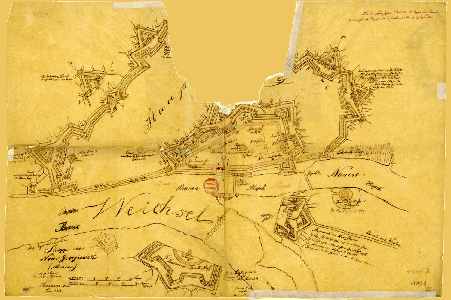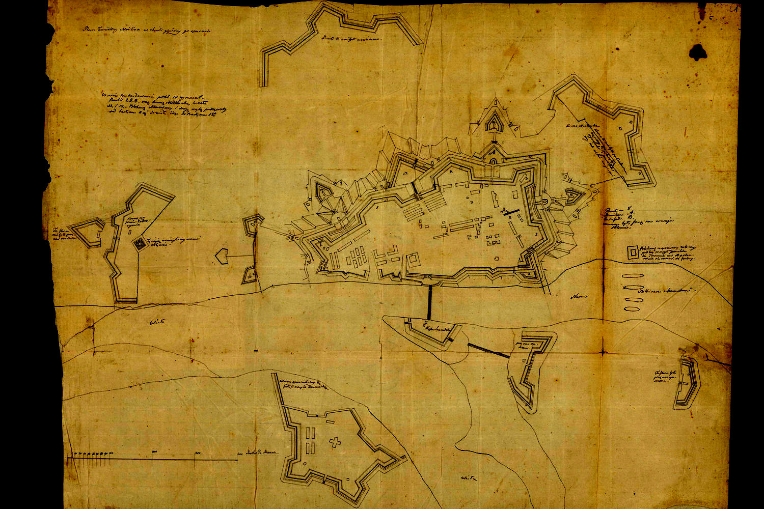 fot.1. Plan twierdzy z 1831 roku, z dopiskami obrońców twierdzy - ze zbiorów Archiwum Głównego Akt Dawnych,
