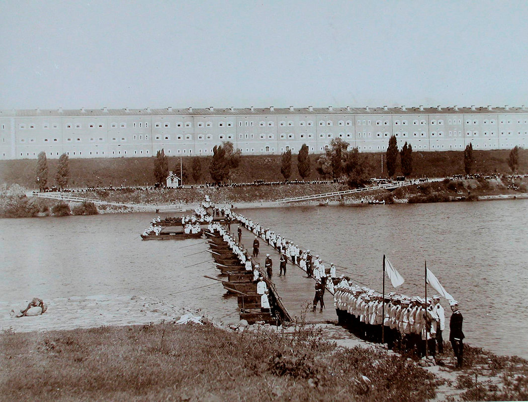 Wewnątrz francuskiego rdzenia bastionowego, zakończono budowę dwukilometrowego obwodu koszar obronnych, zdolnych pomieścić nawet 20 tysięcy żołnierzy. Był to charakterystyczny dla rosyjskich fortyfikacji budynek, podobny do tych zastosowanych w twierdzach Dęblin i Brześć. Koszary te, osłaniane z czterech kaponier, stanowiły tzw. trzeci obwód twierdzy Modlin i miały pełnić funkcję ostatniego punktu oporu w przypadku przełamania wcześniejszych linii obronnych. Budynki koszarowe wyposażono w strzelnice dla dział i broni piechoty.