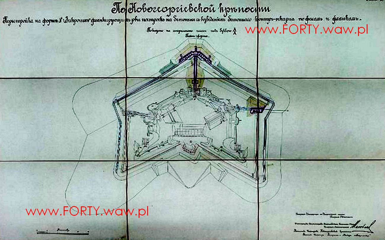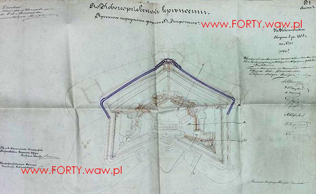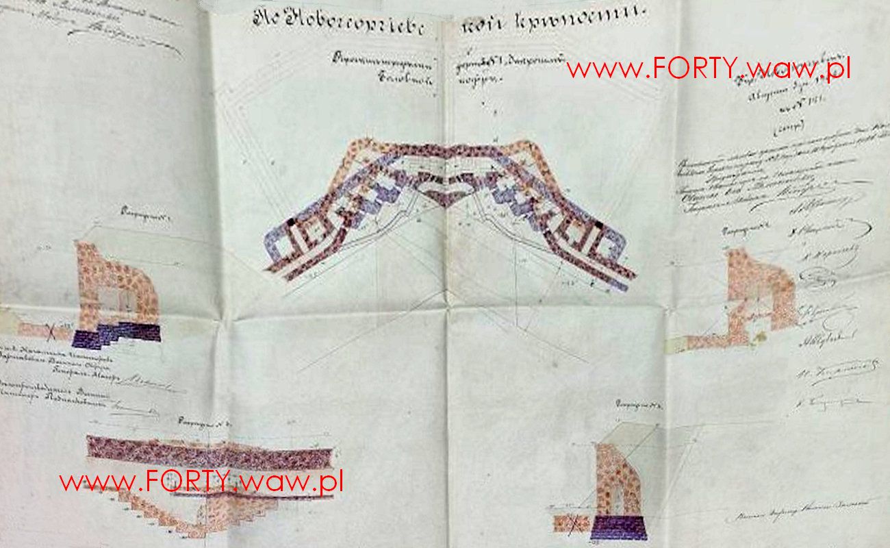 fot.1-3. Projekty przebudowy fortu z zaznaczonymi starymi i nowymi kaponierami.