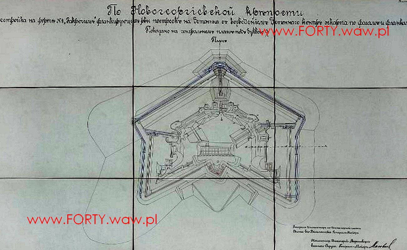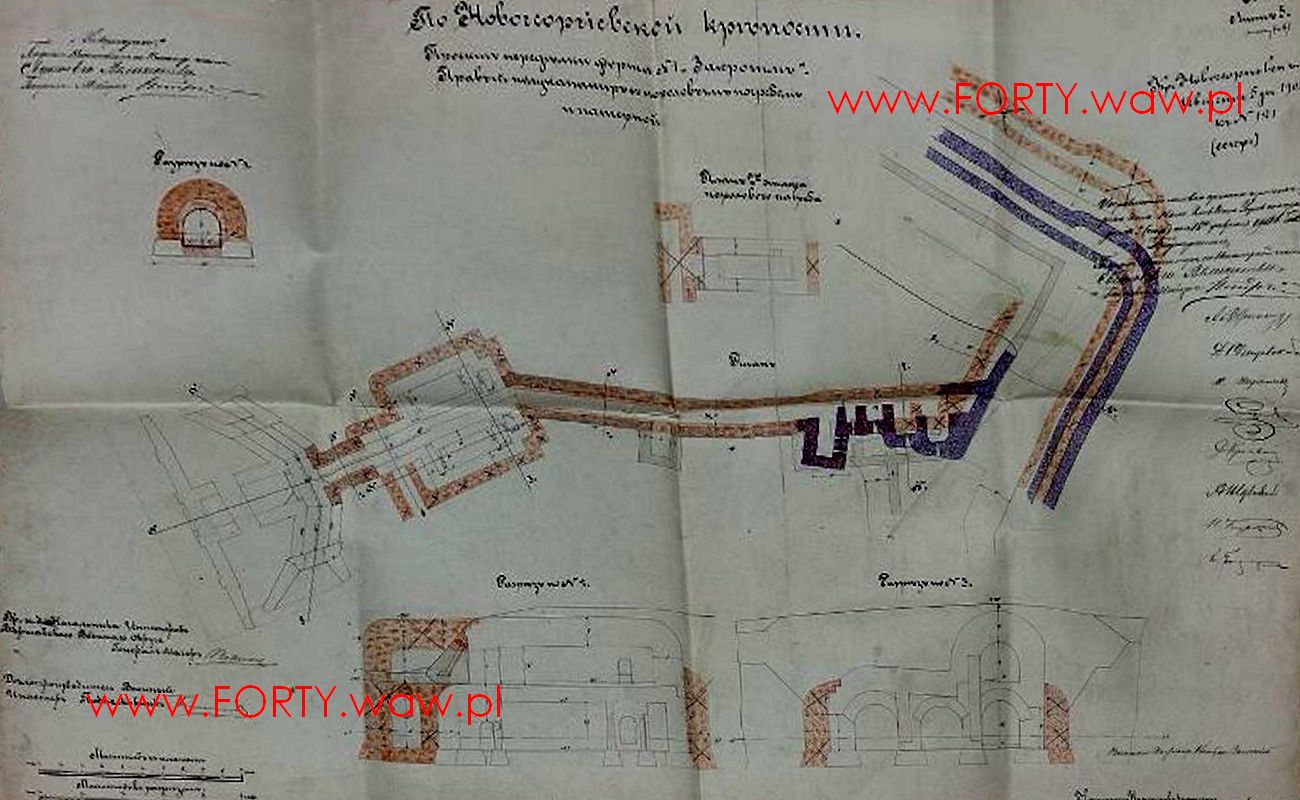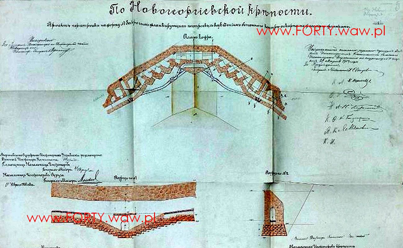fot.1-3. Projekty przebudowy fortu z zaznaczonymi starymi i nowymi kaponierami.