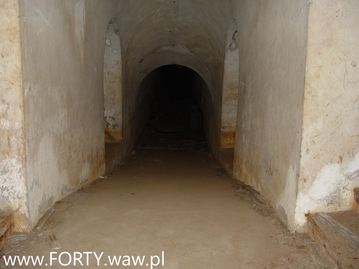 W chodnikach przeciwskarpy regularnie rozmieszczono zaczątki galerii kontrminowych. Tunel w przeciwskarpie ma ponad 700 metrów długości. Natomiast długość wszystkich podziemnych chodników fortu oceniana jest na ponad 1000 metrów. Dwa pozostałe ceglane kojce skarpowe wzniesiono od nowa tym razem wykorzystując do tego celu beton. Prowadzące do nich poterny pozostały nadal ceglane.
