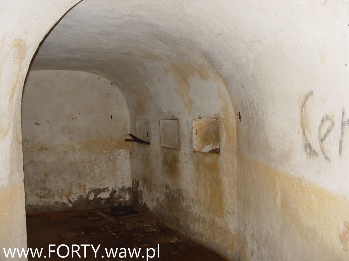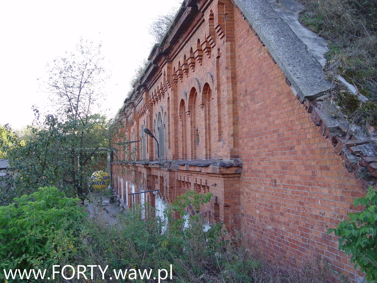 W szyi wybudowano dwupoziomowe ceglane koszary z osiemnastoma pomieszczeniami, z dużymi oknami. Koszary posiadają dwa wejścia od strony szyi na pierwszym poziomie oraz jedno wejście od strony czoła na drugim poziomie. Na dziedzińcu fortu powstały dwie ceglane, wolnostojące prochownie.