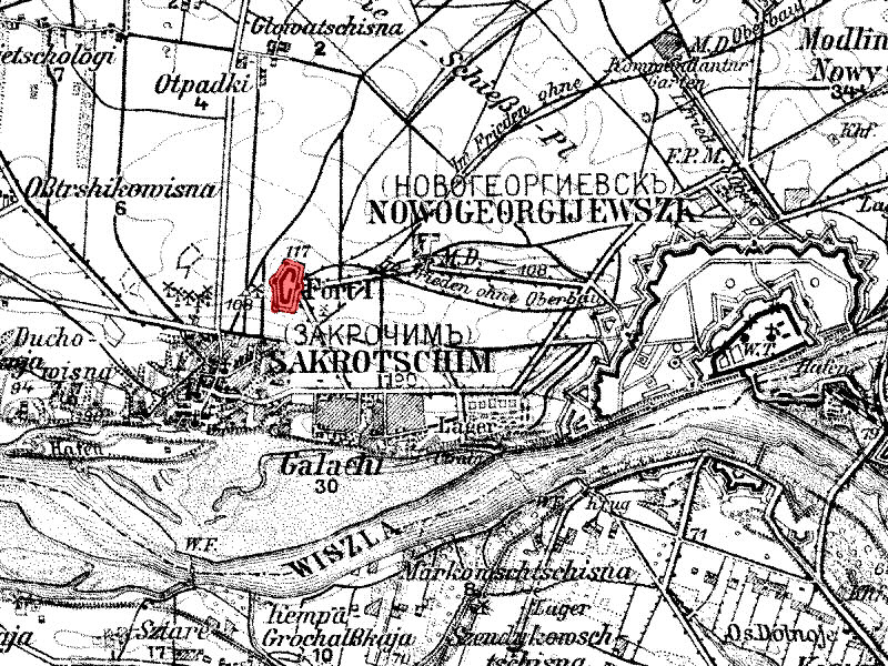 Na północ od miejscowości Zakroczym wzniesiono Fort I, jeden z fortów tworzących pierwszy, wewnętrzny pierścień Twierdzy Modlin, budowany w latach 1883–1888. Projekt oparto na wzorcowym planie rosyjskiego fortu z 1879 roku (F1879). W okresie 1894–1900 fort przeszedł gruntowną modernizację, a kolejne prace budowlane prowadzono na dziele w latach 1912–1914. Jest to jeden z najciekawszych fortów twierdzy, wyróżniający się 700-metrowym tunelem w przeciwskarpie.