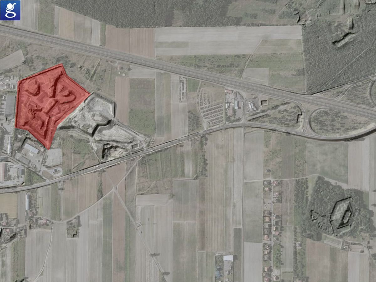 fot.5 Zdjęcia LIDAR w Geoportal.gov.pl, widoczny układ fortu oraz pobliskie dwie prochownie.