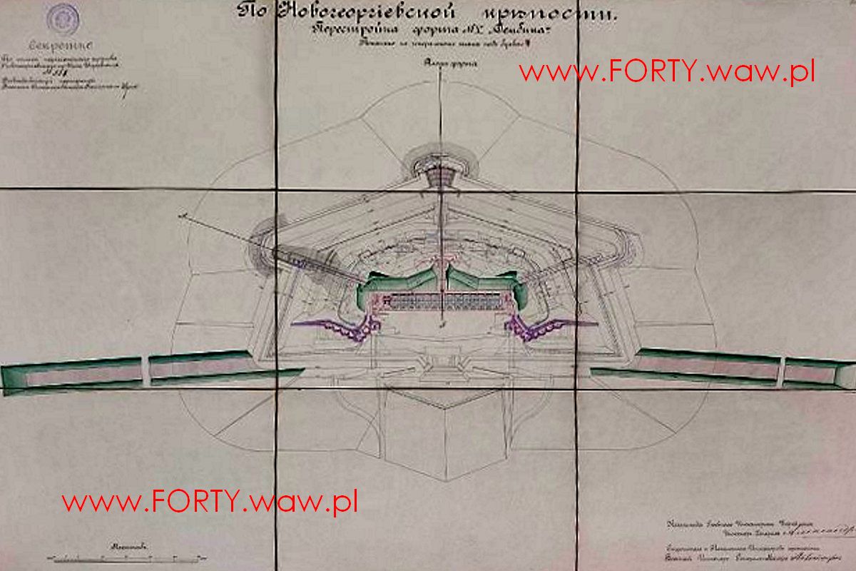 Wewnętrzny pierścień fortów Twierdzy Modlin (Nowogieorgijewsk / Новогеоргиевск), składający się ceglanych dzieł numerowanych od I do VIII, budowano od 1883 roku. Umocnienia powstawały głównie na planie standardowego fortu z 1879 roku. Forty w kolejnych latach były przebudowane i zmodernizowane, aby nadążyć za zmieniającą się techniką wojskową.