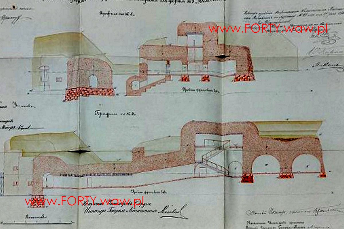 fot.3-4. Plany koszar oraz tradytora-kaponiery na barkach koszar. fot.5. Przekrój przez koszary i tradytory.